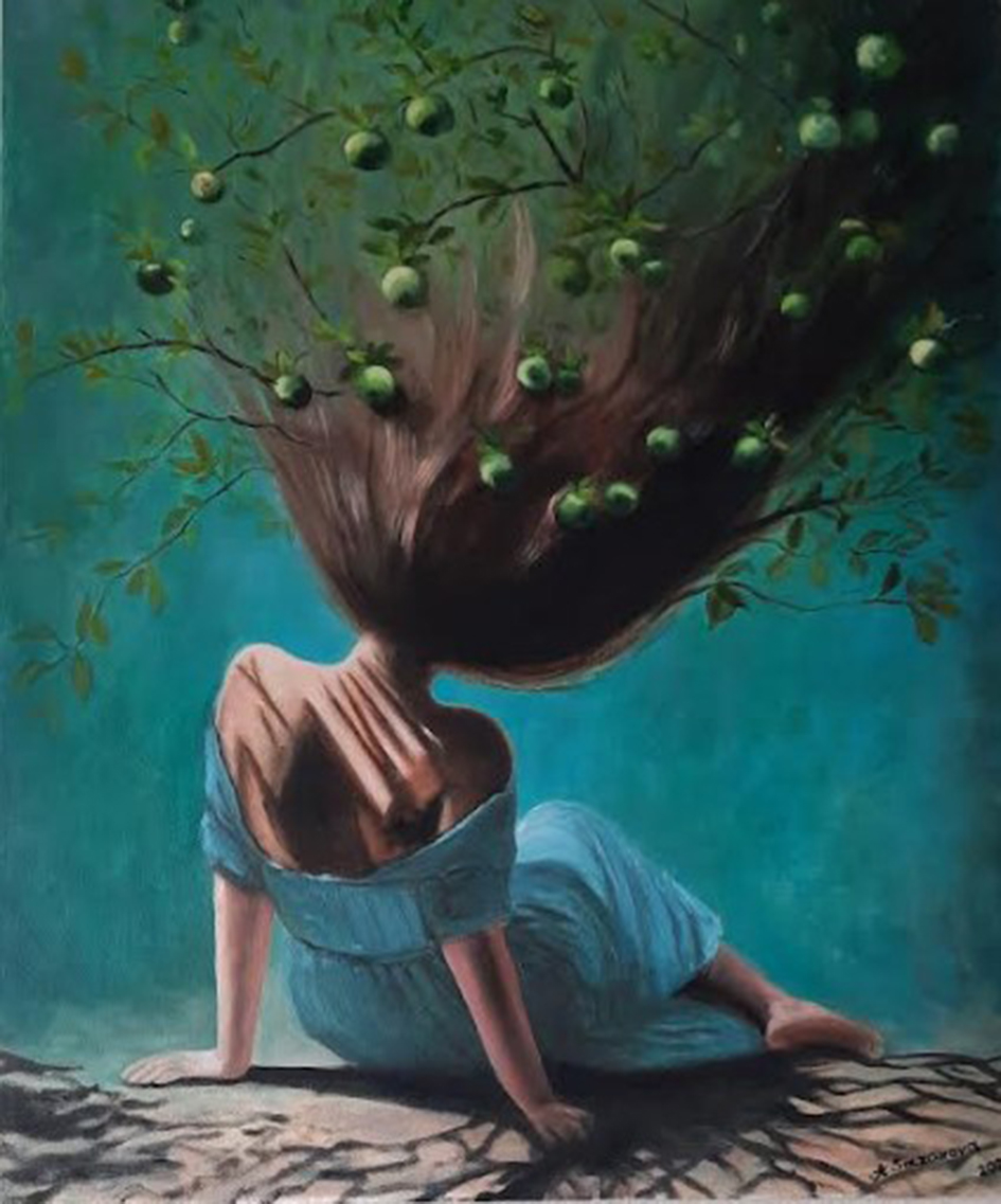 Im Zentrum ihrer Malerei stehen Themen wie Weiblichkeit, Natur und die poetische Verbindung zwischen Mensch und Welt. Ihre Werke sind geprägt von symbolischen Bildwelten, einen Farbübergängen und einer sensiblen, emotionalen Bildsprache. Häufig erscheinen weibliche Figuren als Verkörperung der „Mutter Natur“ – einer Quelle von Leben, Fruchtbarkeit, Erneuerung und Harmonie.