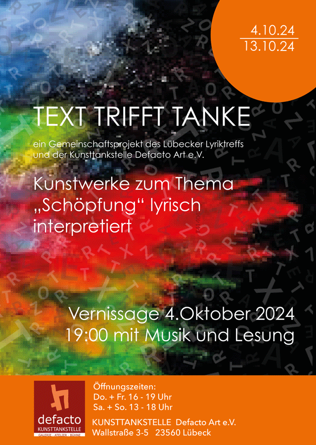 4. bis 13. Oktober 24 : Ausstellung / Defacto Art & Lübecker Lyriktreff / Kunsttankstelle